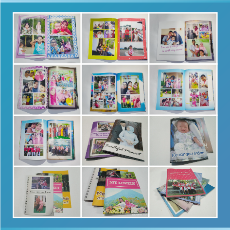- Ukuran A4 (21cm x 29,7cm) - Kertas premium tidak mudah sobek - Bervariasi desain latar belakang - Hasil foto tajam dan cerah - Muat 50-120 foto - Isi 40 Halaman - Laminasi Cover doff - Jilid Buku Lem